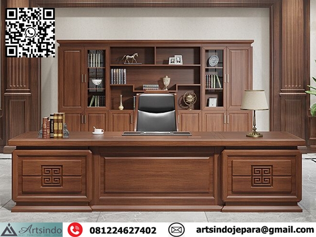 Desain Meja Kantor Direktur Minimalis Kayu jati Mewah, Model Meja Kerja Direktur Ekslusif