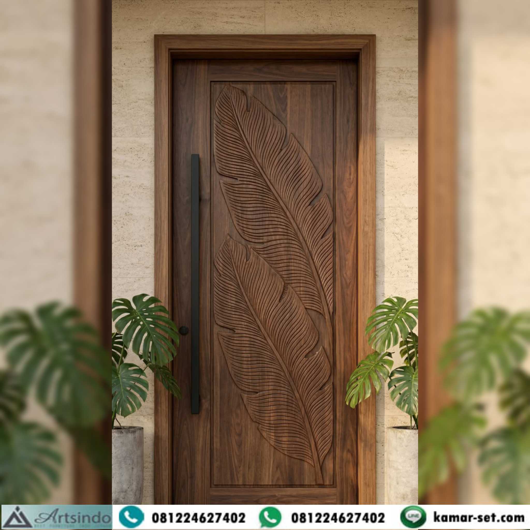 Pintu Kayu Jati Minimalis Motif Daun Pisang